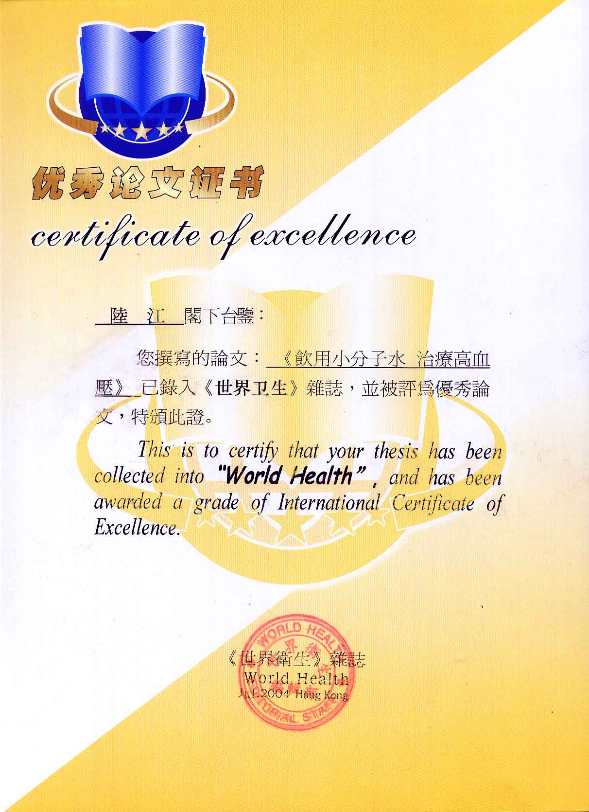 一、創(chuàng)造了在家在職場(chǎng)使用方便的微小分子團(tuán)水器具。在世界上首先用此理療方法,大規(guī)模地成功地逆轉(zhuǎn)和消除動(dòng)脈粥樣硬化,確實(shí)祛俆高血壓和冠心病與糖尿病,使患者恢復(fù)動(dòng)脈和心臟及胰島的健康,可消除因細(xì)胞缺水使器官衰弱而形成多種器官的缺水性病癥,并使健康人可預(yù)防和減緩動(dòng)脈粥樣硬化,減少心腦血管病,具有重大的社會(huì)經(jīng)濟(jì)和戰(zhàn)略意義。