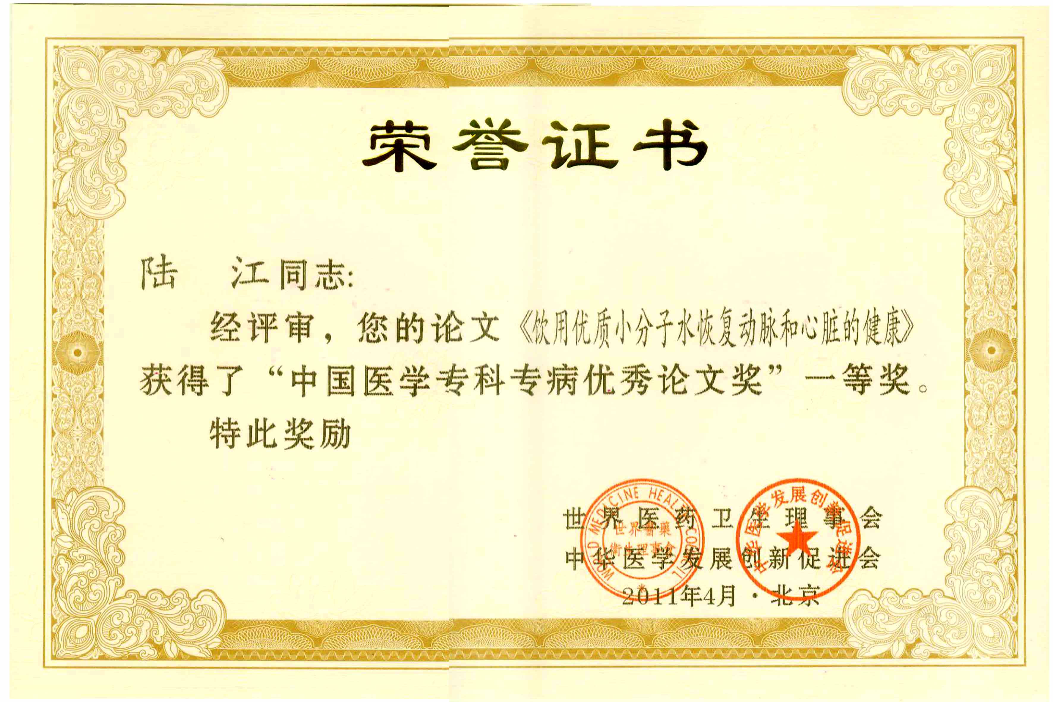 人類幾千年來患以上病癥需終生服藥,幾十年也不能治愈。可是我國(guó)南寧的高級(jí)工程師陸 江,于1990年想根治高血壓,研究發(fā)明了離子水瓶,處理出微小分子團(tuán)水供飲用,經(jīng)過醫(yī)院臨床試用和專家鑒定,1999年獲中國(guó)發(fā)明專利權(quán),產(chǎn)品于2000年投放市場(chǎng)后一直跟蹤調(diào)查,據(jù)全國(guó)各地用戶反饋:祛除了高低血壓、糖尿病和冠心病,并使前列腺增生、咽喉炎、鼻竇炎、慢性氣管炎、支氣管炎、矽肺病、哮喘、慢性胃炎、腸炎、慢性膽囊炎、慢性腎炎、腎衰、膀胱炎、便秘、痔瘡、風(fēng)濕性關(guān)節(jié)炎和濕疹皮炎及中風(fēng)后遺癥等病癥不藥而愈。為什么喝微小水能治20多種病?陸 江從1991年德國(guó)科學(xué)家發(fā)現(xiàn)細(xì)胞膜水通道僅為2納米獲得啟發(fā),認(rèn)為多種器官患病是因細(xì)胞脫水,不能正常代謝和分裂增殖,才使器官細(xì)胞減少致衰弱萎縮而形成細(xì)胞缺水性病癥。22年來的實(shí)踐有力地支持了“細(xì)胞脫水致病”這一重要論點(diǎn),表明喝微小水可滿足細(xì)胞的生理需求,補(bǔ)水就能祛病,是生命科學(xué)新亮點(diǎn)。